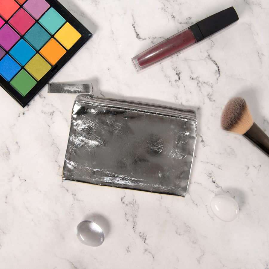 Косметичка FAUDOK, серебряный, 12 x 8.5 x 0.5 cm, искусственная кожа