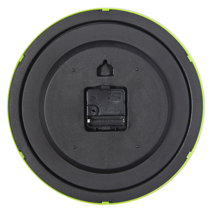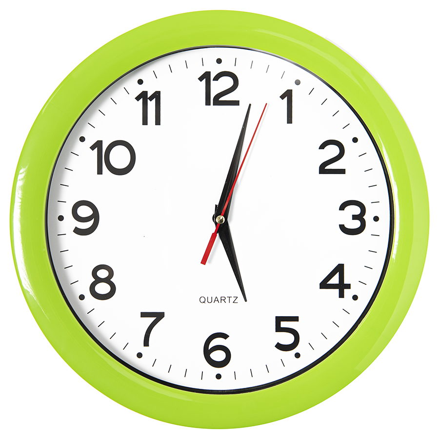 Pantone 368 C. Часы настенные с кварцевым механизмом, работают от 1 батарейки АА. Предназначены для вставки циферблата с печатью по индивидуальному дизайну Комплектация: 1) корпус с часовым механизмом, 2) минеральное стекло, 3) ободок, 4) стрелки - 3 шт. (часовая и минутная стрелки - черного цвета, секундная - красного цвета). Для удобства вставки циферблата с печатью по индивидуальному дизайну, стрелки часов не зафиксированы и поставляются в отдельном пакетике) 5) Муляж циферблата (диаметр 235 мм) Для вставки используется мелованная бумага матовая 300 гр.
