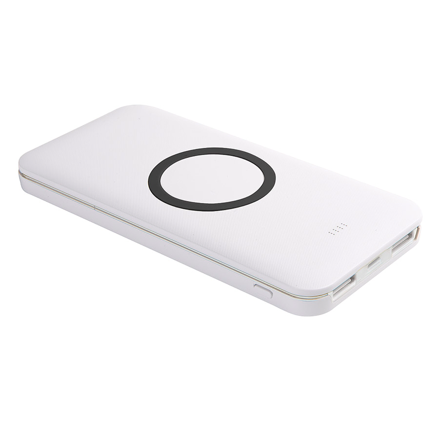 Универсальный аккумулятор с функцией беспроводной зарядки SATURN,белый с черным,15х7,3х1,2см