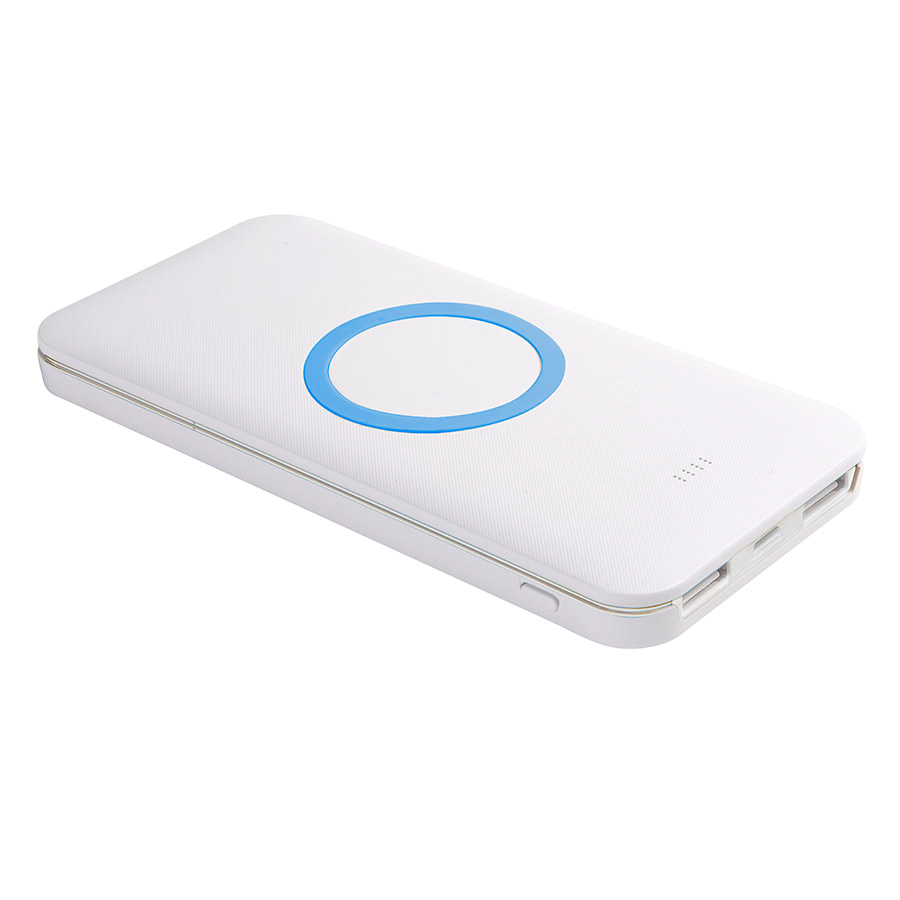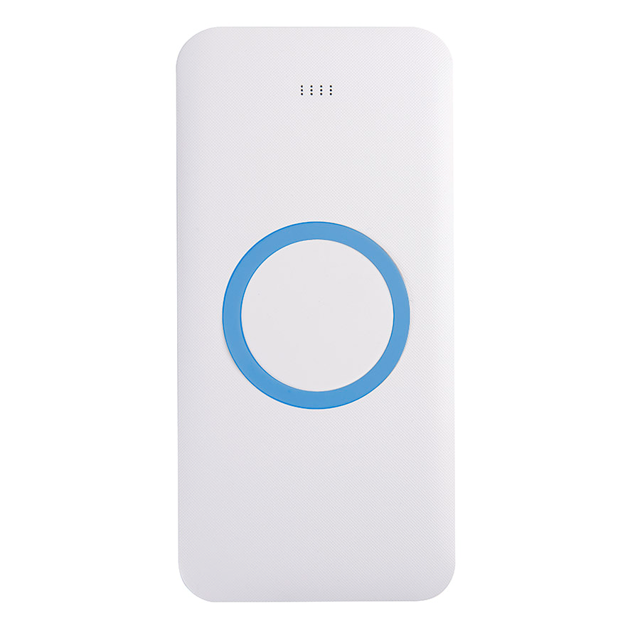 Универсальный аккумулятор с функцией беспроводной зарядки SATURN,белый с голубым,15х7,3х1,2с