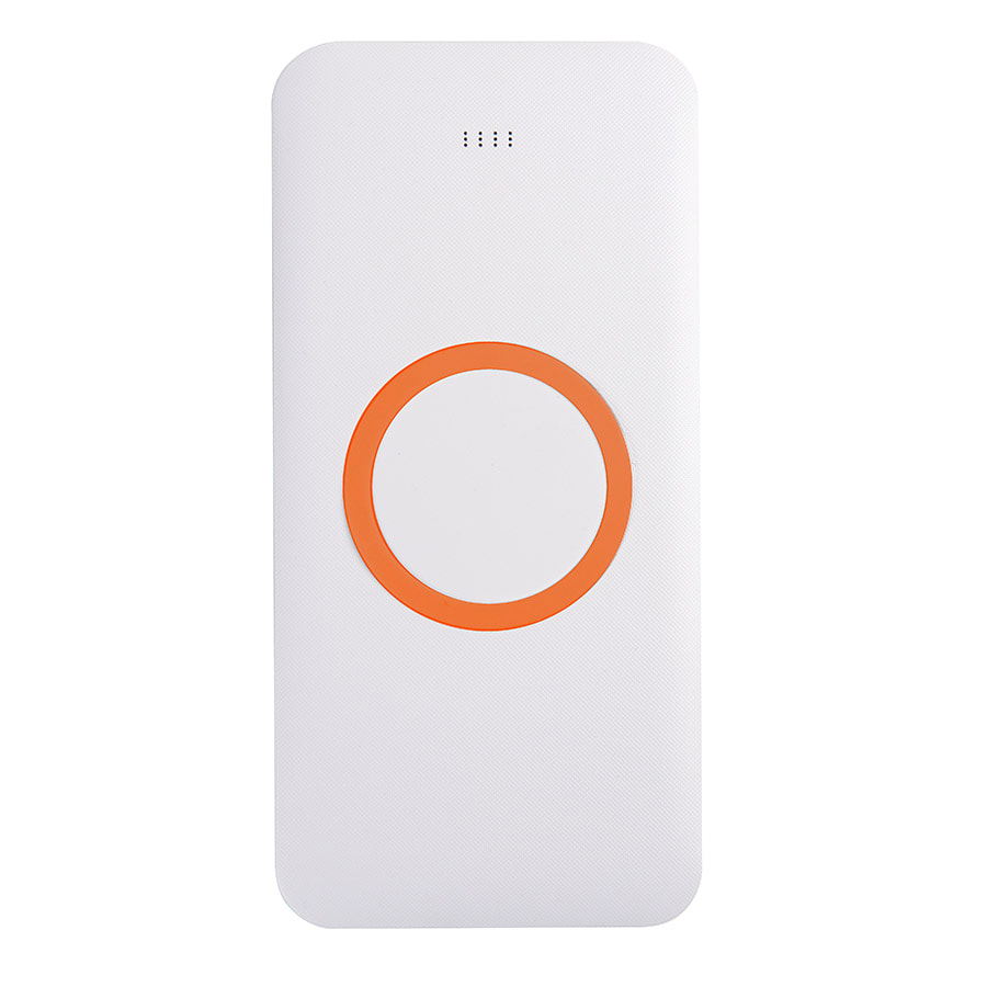 Универсальный аккумулятор с функцией беспроводной зарядки SATURN,белый с оранжевым,15х7,3х1,