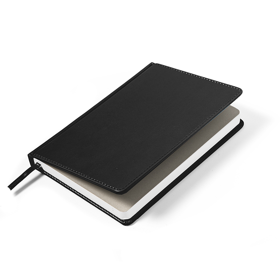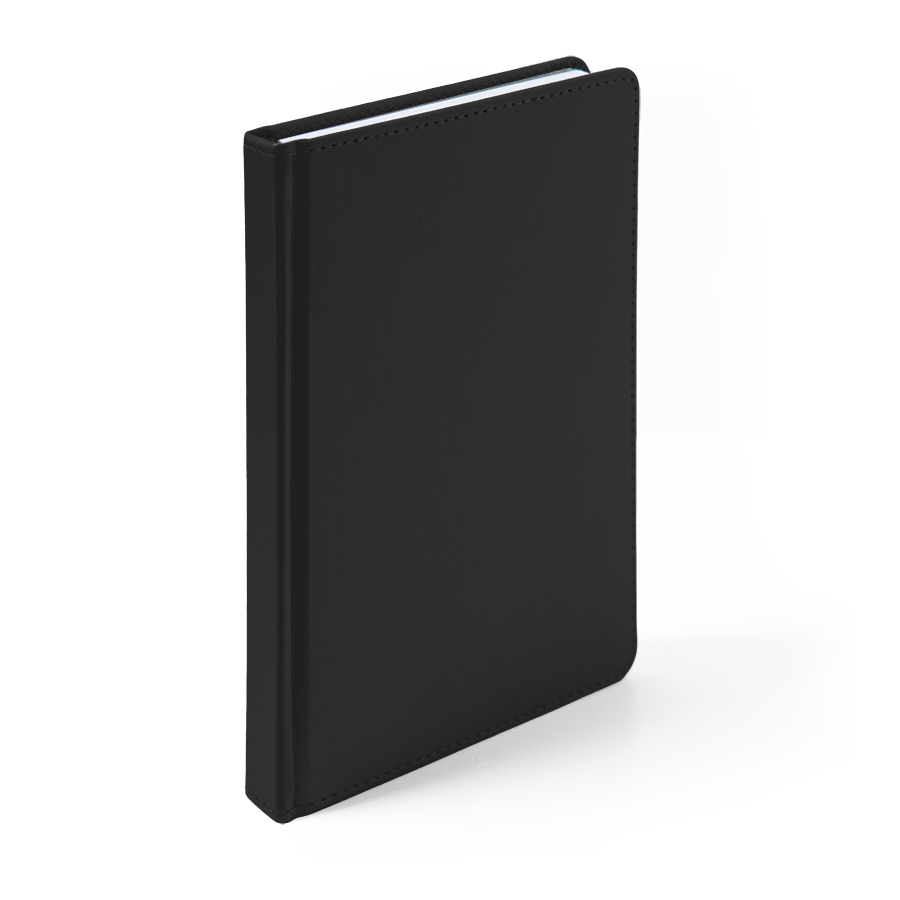 Цвет обложки, близкий к пантону Black C Размер 145*205 мм Переплет твердый Обложка термоактивный PU Блок недатированный, в линейку Скругленные углы, двухцветная печать Бумага белая, плотность 70 г м2 272 страницы 14 инфостраниц Каптал и ляссе в цвет обложки Упаковка прозрачный полибэг