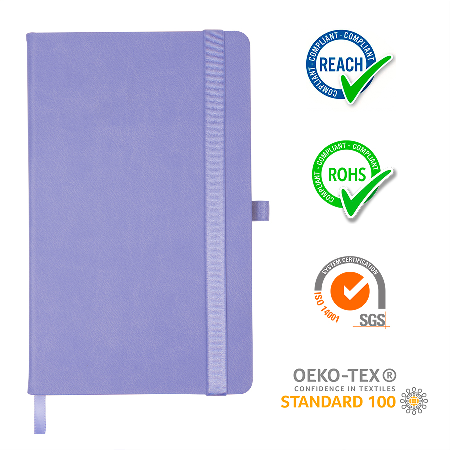 Цвет обложки, близкий к пантону 7675 СРазмер 130*210 мм, переплет твердыйБлок недатированный, в линейкуСкругленные углы, двухцветная печатьБумага кремовая, плотность 70г м2Форзац нахзац кремовые256 страниц14 инфостраницШелковистая резинка, 12 ммЛяссе в цвет резинкиПетелька для ручкиКарман для визитокУпаковка: полипропиленовый пакет