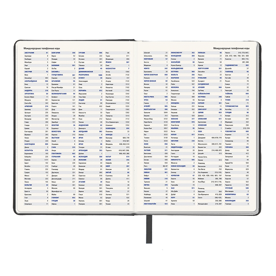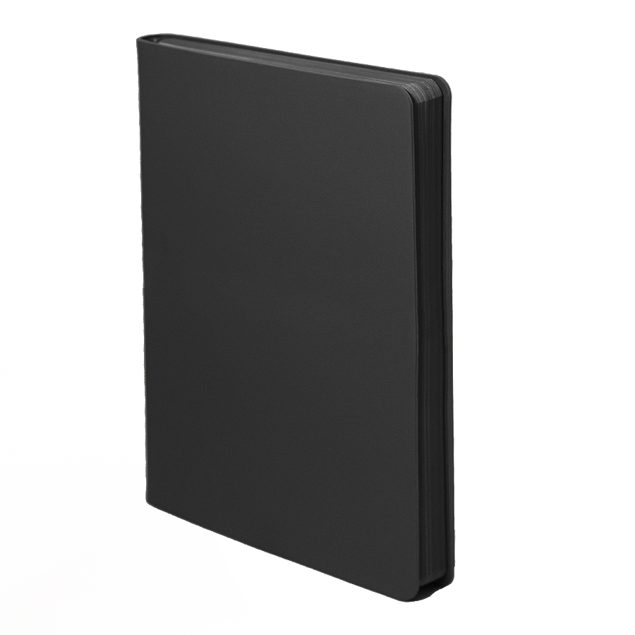Цвет обложки, близкий к пантону Black C Размер 145*205 мм Переплет мягкий Обложка термоактивный PU с покрытием Soft-touch Блок недатированный, в линейку Скругленные углы, двухкрасочная печать Обрез более темного оттенка, чем обложка Бумага кремовая, плотность 70 г м2 Форзац нахцаз серые 272 страницы 8 инфостраниц Ляссе в цвет обложки Упаковка крафтовый сливбокс