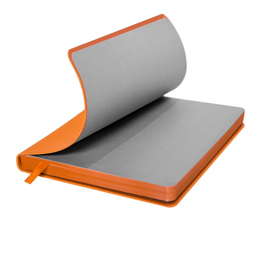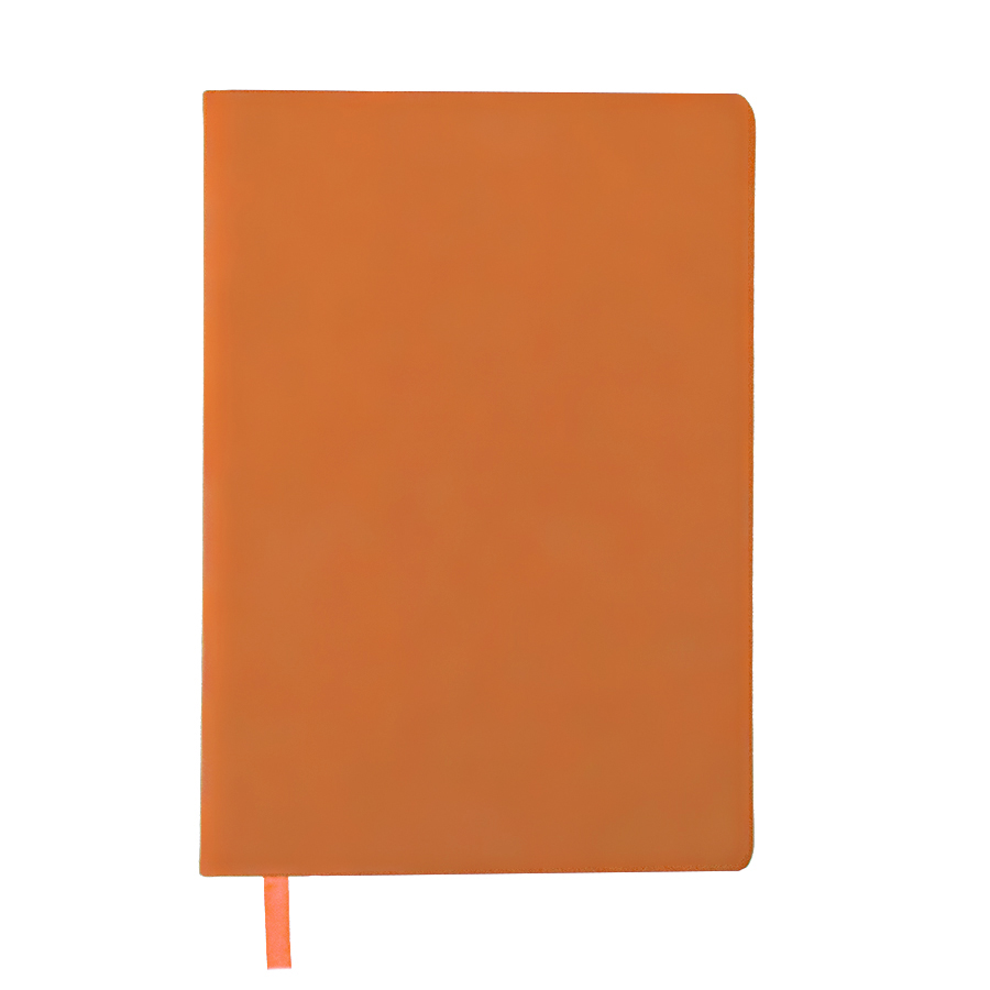 Цвет обложки, близкий к пантону 165C Размер 145*205 мм Переплет мягкий Обложка термоактивный PU с покрытием Soft-touch Блок недатированный, в линейку Скругленные углы, двухкрасочная печать Обрез более темного оттенка, чем обложка Бумага кремовая, плотность 70 г м2 Форзац нахцаз серые 272 страницы 8 инфостраниц Ляссе в цвет обложки Упаковка крафтовый сливбокс