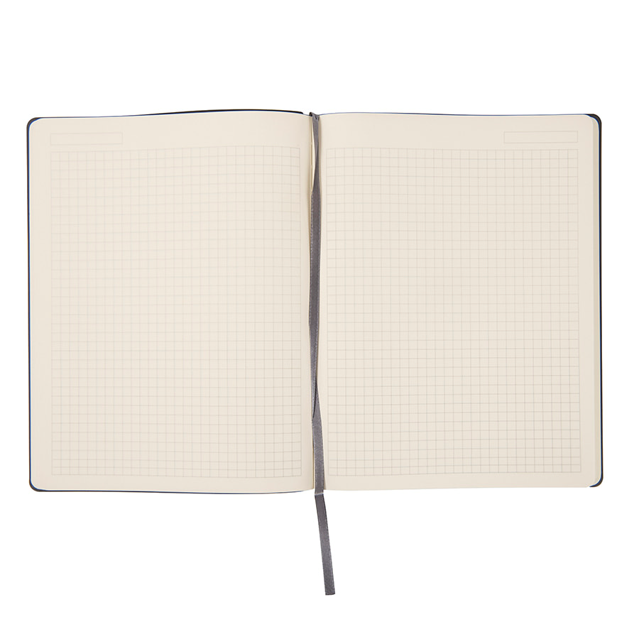 Бизнес-блокнот "Biggy", B5 формат, темно-синий, серый форзац, мягкая обложка, в клетку