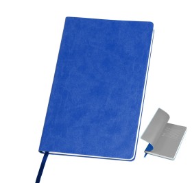 Блокнот с мягкой термоактивной обложкой и популярной комбинацией цветов Термоактивный PU материал Velvet Цвет обложки, близкий к Pantone 7688C Цвет форзаца, близкий к Pantone Cool Gray 5U Внутренний блок 256 страниц в линейку Идеально скругленные углы блока Перфорированные 8 последних листов Кремовая FSC бумага 70 г м2 Ляссе в тон обложки Индивидуальная упаковка: фирменный сливбокс thINKme