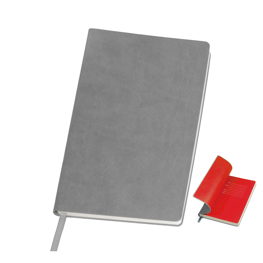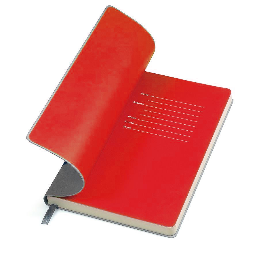 Блокнот с мягкой термоактивной обложкой и популярной комбинацией цветов Термоактивный PU материал Velvet Цвет обложки, близкий к Pantone 423C Цвет форзаца, близкий к Pantone Red 2035U Внутренний блок 256 страниц в линейку Идеально скругленные углы блока Перфорированные 8 последних листов Кремовая FSC бумага 70 г м2 Ляссе в тон обложки Индивидуальная упаковка: фирменный сливбокс thINKme