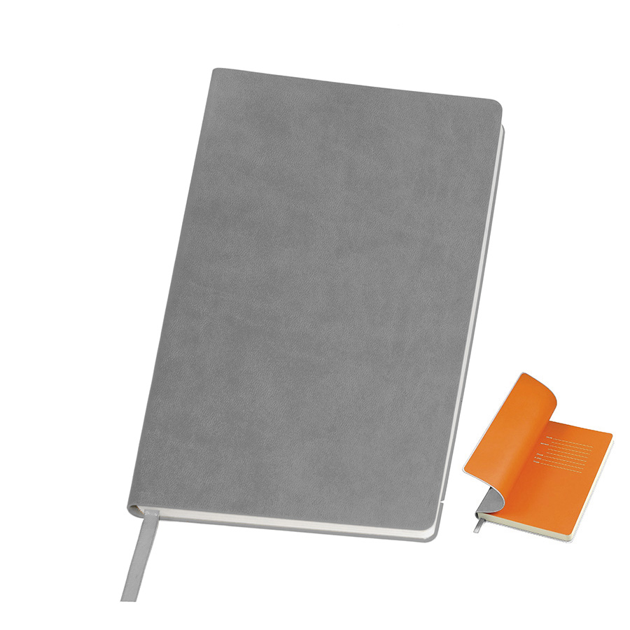 Бизнес-блокнот "Funky", 130*210 мм, серый, оранжевый форзац, мягкая обложка, блок-линейка