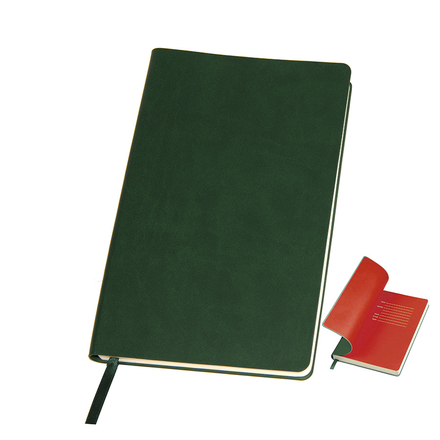 Блокнот с мягкой термоактивной обложкой и популярной комбинацией цветов Термоактивный PU материал Velvet Цвет обложки, близкий к Pantone 3435C Цвет форзаца, близкий к Pantone Red 2035U Внутренний блок 256 страниц в линейку Идеально скругленные углы блока Перфорированные 8 последних листов Кремовая FSC бумага 70 г м2 Ляссе в тон обложки Индивидуальная упаковка: фирменный сливбокс thINKme