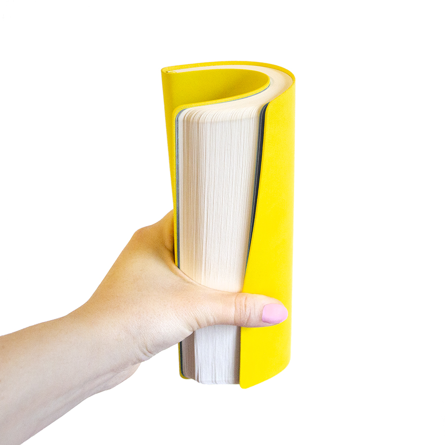 Блокнот с мягкой термоактивной обложкой и популярной комбинацией цветов Термоактивный PU материал Velvet Цвет обложки, близкий к Pantone 109С Цвет форзаца, близкий к Pantone Cool Gray 5U Внутренний блок 256 страниц в линейку Идеально скругленные углы блока Перфорированные 8 последних листов Кремовая FSC бумага 70 г м2 Ляссе в тон обложки Индивидуальная упаковка: фирменный сливбокс thINKme