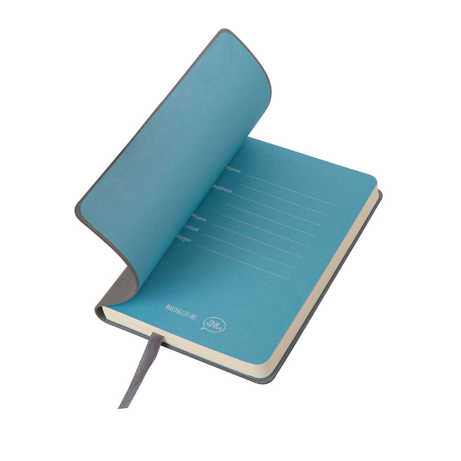 Блокнот с мягкой термоактивной обложкой и популярной комбинацией цветов Термоактивный PU материал Velvet Цвет обложки, близкий к Pantone 423С Цвет форзаца, близкий к Pantone 298U Внутренний блок 192 страницы в клетку Идеально скругленные углы блока Перфорированные 8 последних листов Кремовая FSC бумага 70 г м2 Ляссе в тон обложки Фирменный сливбокс thINKme