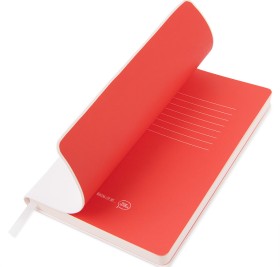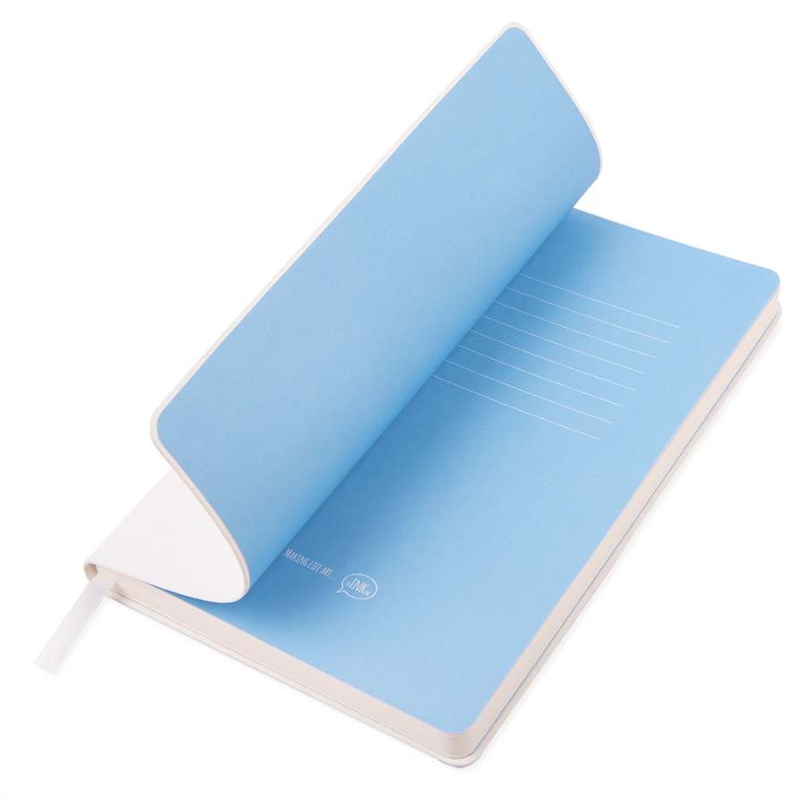 Блокнот с мягкой термоактивной обложкой и популярной комбинацией цветовТермоактивный PU материал VelvetЦвет обложки белыйЦвет форзаца, близкий к Pantone Blue 298UВнутренний блок 256 страниц в точкуИдеально скругленные углы блокаПерфорированные 8 последних листов Кремовая FSC бумага 70 г м2Ляссе в тон обложкиИндивидуальная упаковка: фирменный сливбокс thINKme