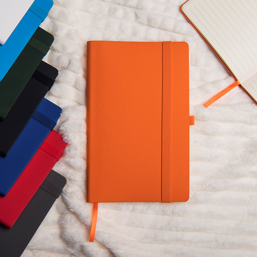Бизнес-блокнот "Gracy", 130х210 мм, оранжев., кремовая бумага, гибкая обложка, в линейку, на резинке