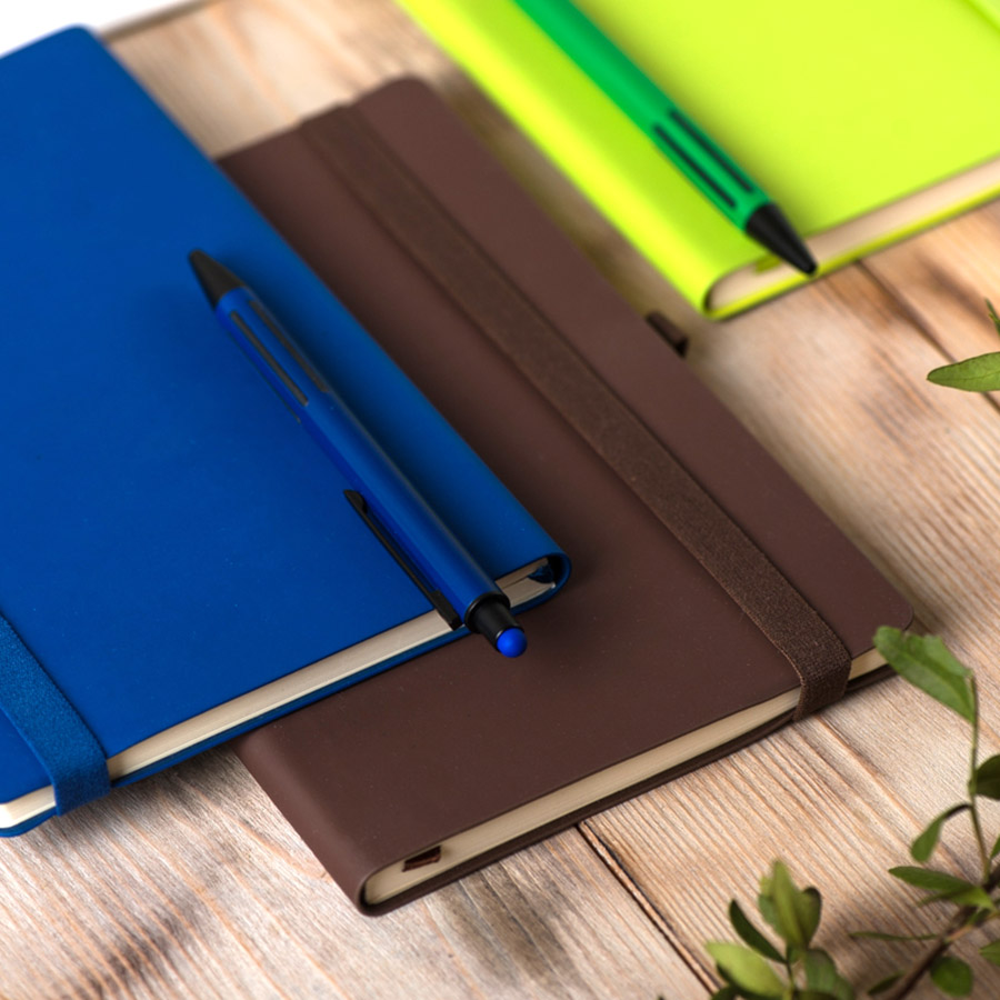 Soft-touch блокнот с покрытием, защищающим от царапин FSC сертификат Мягкая термоактивная обложка PU нового поколения Silk Plus Пантон, близкий к 7519 С Кремовая бумага (блок 70 гр, форзац 160 гр) Блок 192 стр. в линейку Перфорация 8 последних листов. Ляссе в тон обложке. Практичные закругленные углы.