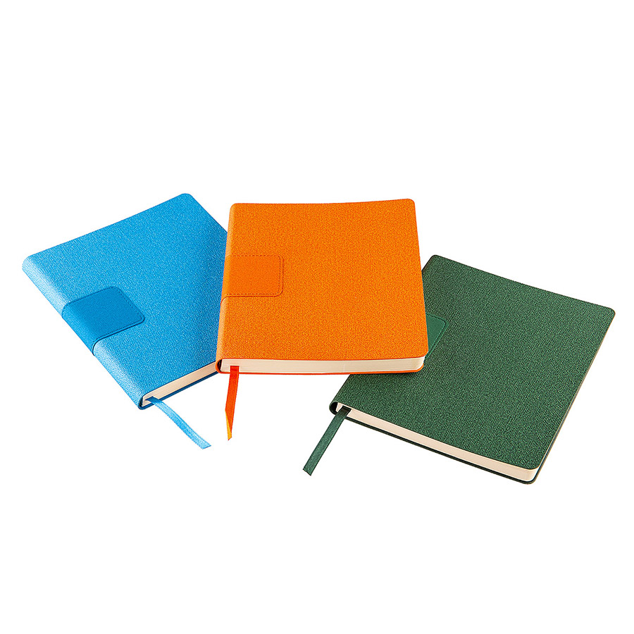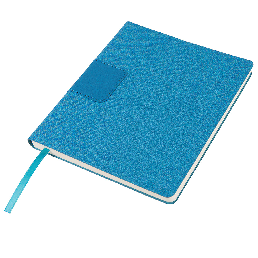 TWEEDI – бизнес-блокнот в мягкой обложке Размер 150*180 мм Обложка из PU Nubbi c декоративным элементом из PU Suede Цвет обложки близок к pantone 2925CВнутренний блок 256 страниц в линейкуИдеально скругленные углы блокаПерфорированные 8 последних листов Кремовая eco-friendly эвкалиптовая FSC бумага 70 г м2Ляссе в тон обложкиИндивидуальная упаковка: фирменный thINKme sleeve-box