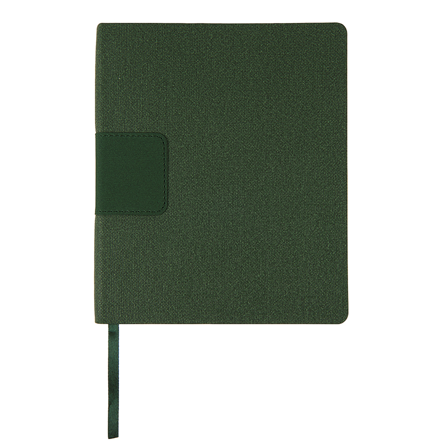 TWEEDI – бизнес-блокнот в мягкой обложке Размер 150*180 мм Обложка из PU Nubbi c декоративным элементом из PU Suede Цвет обложки близок к pantone 3435CВнутренний блок 256 страниц в линейкуИдеально скругленные углы блокаПерфорированные 8 последних листов Кремовая eco-friendly эвкалиптовая FSC бумага 70 г м2Ляссе в тон обложкиИндивидуальная упаковка: фирменный thINKme sleeve-box