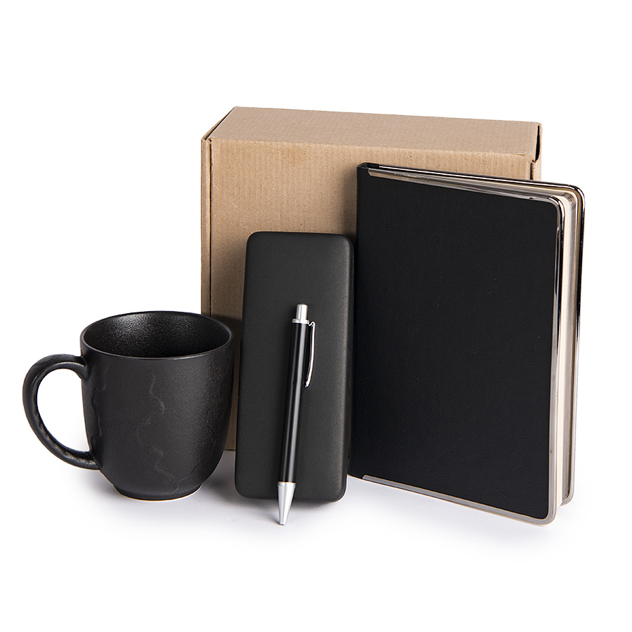 Набор подарочный AUTOGRAPHВ набор входят: Кружка IRON, 10х9,5см, 420мл, фарфор арт. 13627 размер: 10 х 9,5смобъем: 420 млматериал: фарфорРучка шариковая CLASSIC, черный серебристый, арт. 19601 35размер: 1,1 х 13,5 смматериал: металлФутляр для 1-2 ручек, черныйарт. 16409 35размер: 3 x 6,5 x 16,5 смматериал: PUЕжедневник недатированный Montrose, А5, черный, кремовый блок, графитовый срезарт. 24611 35Размер 145*205 ммПереплет твердыйМеталлическая рамка по периметру, цвет gun metalОбложка термоактивный PUБлок недатированный, в линейкуСкругленные углы, двухцветная печатьБумага кремовая, плотность 70 г м2Форзац нахзац кремовые272 страницы14 инфостраницОбрез в цвет металлической рамкиКаптал и ляссе в цвет обложкиУпаковка крафтовый сливбокс Стружка бумажная, бежевая 3 мм, арт. 20413 204вес: 50 гр.Коробка подарочная BOX, самосборнаяарт. 21016размер 20,5 x 21 x 11смматериал: картон МГК бурыйВНИМАНИЕ! Набор поставляется в разобранном виде.