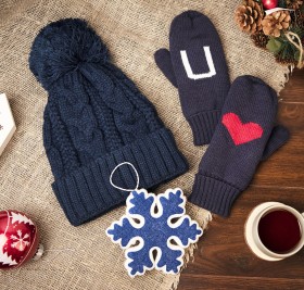Подарочный набор HUG: варежки, шапка, украшение новогоднее, серый
