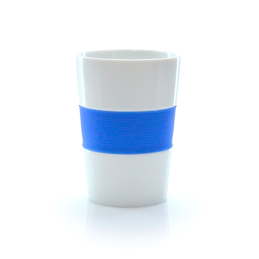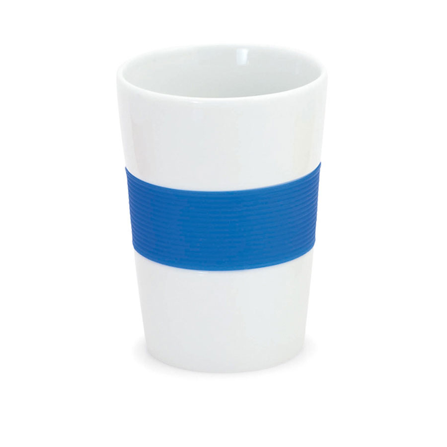 Стакан NELO, белый с синим, 350мл, 11,2х8см, тонкая керамика, силикон