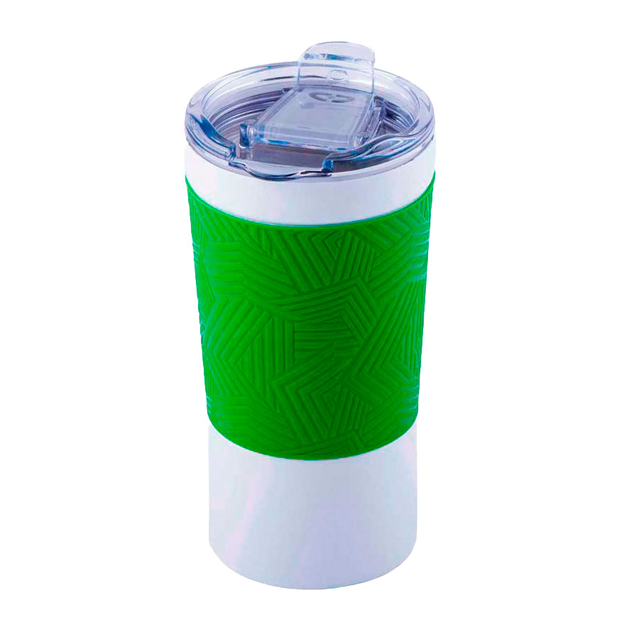 Термокружка вакуумная 'Funny" белая, зеленая, силикон