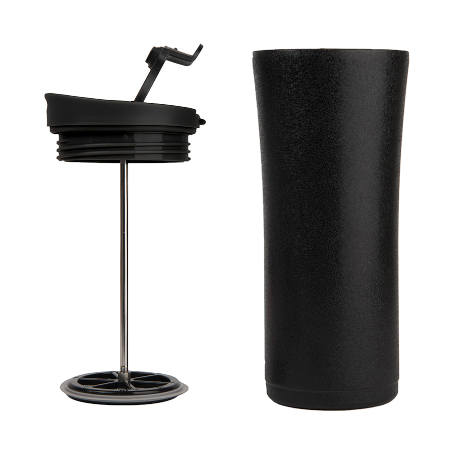 Термокружка вакуумная с ситечком "Brew"; 380 мл; черный металлик; металл/пластик