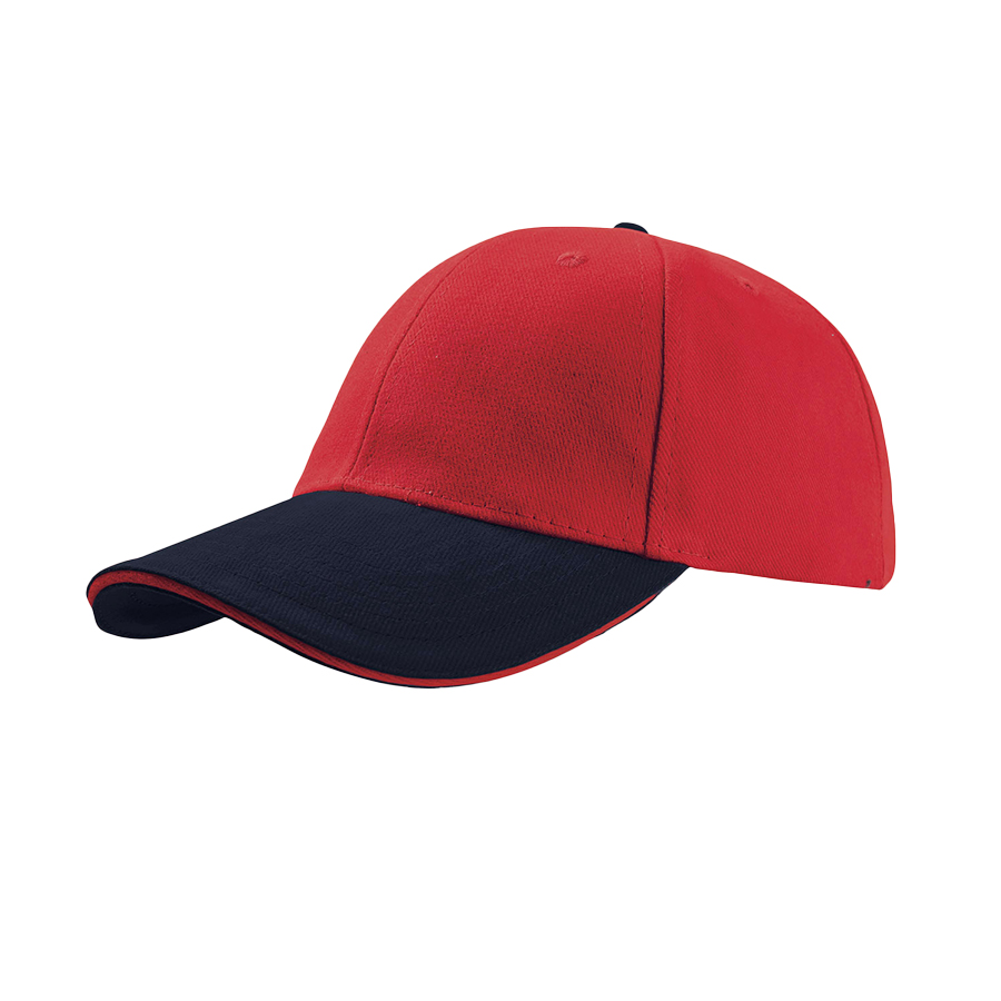 Бейсболка LIBERTY SANDWICH из плотного хлопка - одно из лучших решений для промомероприятий и корпоративной формы: - 6 клиньев, - 6 вышивных люверсов для лучшей вентиляции, - изогнутый козырек «сэндвич» с декоративным кантом, - металлическая застежка.* Допустим незначительный разнотон.Купол: цвет близкий к Pantone 186 C или 200 С, козырек: цвет близкий к Pantone 289 С; цвет канта близкий к Pantone 186 C или 200С