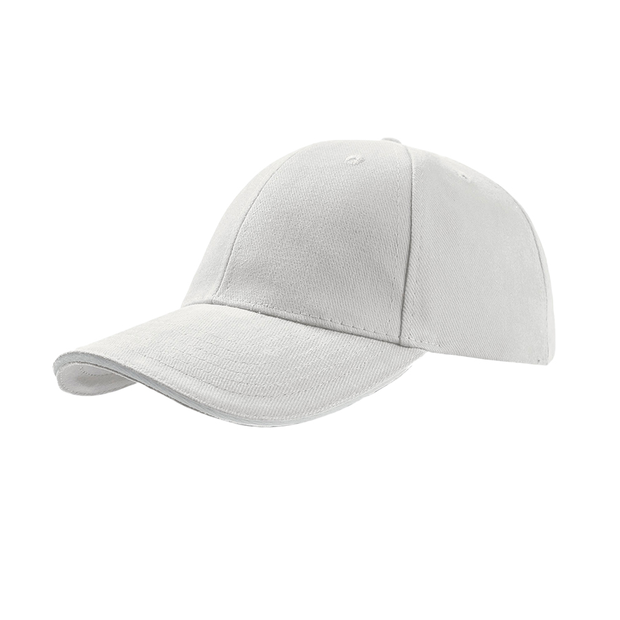 Бейсболка LIBERTY SANDWICH из плотного хлопка - одно из лучших решений для промомероприятий и корпоративной формы: - 6 клиньев, - 6 вышивных люверсов для лучшей вентиляции, - изогнутый козырек «сэндвич» с декоративным кантом, - металлическая застежка. Основной цвет близкий к Pantone White