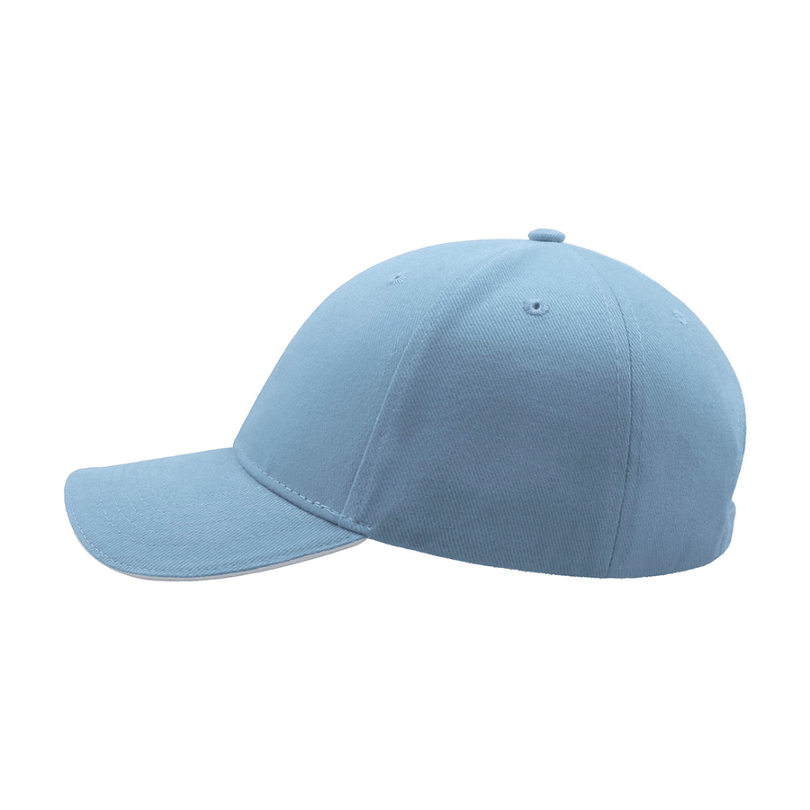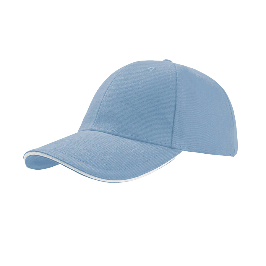 Бейсболка LIBERTY SANDWICH из плотного хлопка - одно из лучших решений для промомероприятий и корпоративной формы: - 6 клиньев, - 6 вышивных люверсов для лучшей вентиляции, - изогнутый козырек «сэндвич» с декоративным кантом, - металлическая застежка.Допустим незначительный разнотон.Цвет бейсболки близкий к Pantone 645 С или 2169 C; цвет канта близкий к Pantone White