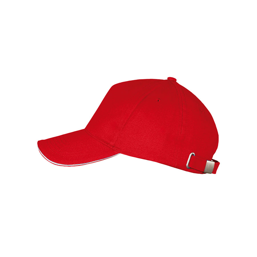 Бейсболка LONG BEACH без лобового шва с жестким козырьком "сэндвич". 4 обшивных люверса, регулируемая металлическая застежка. Цвет (красный) близкий к PANTONE 200С