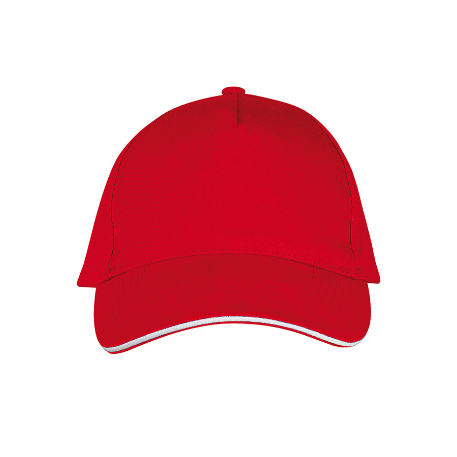 Бейсболка "LONG BEACH", 5 клиньев, метал. застежка, красный/белый, 100% хлопок, плотность 260 г/м2