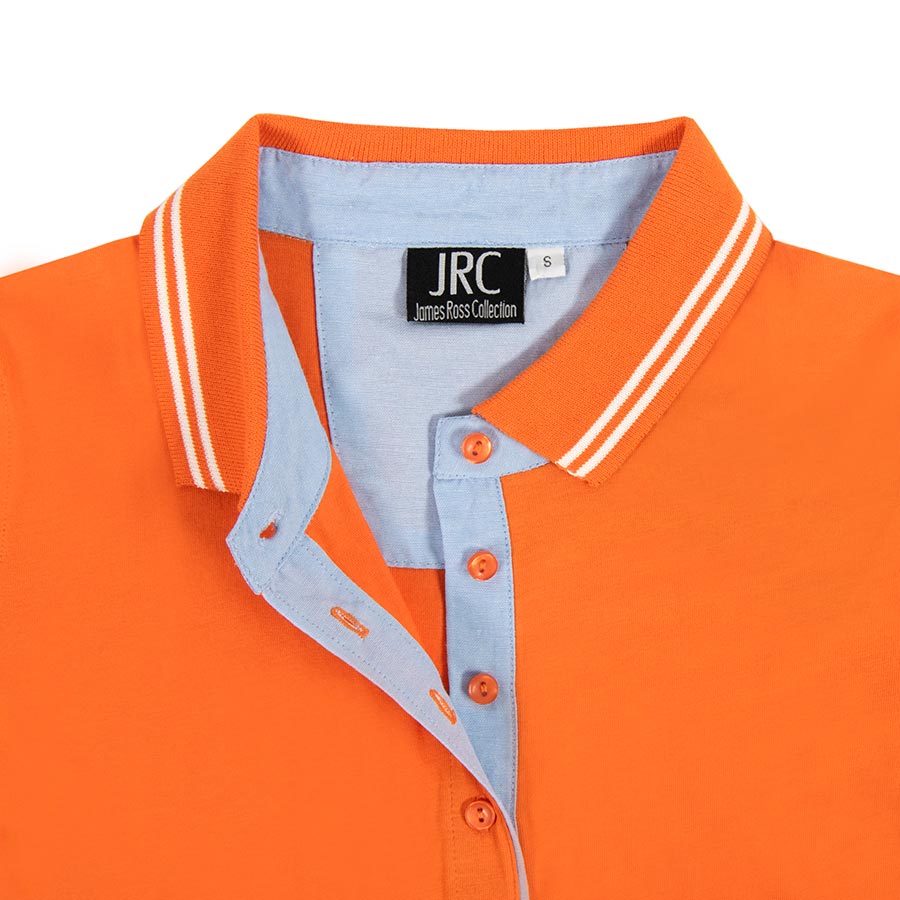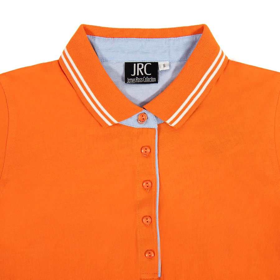Женская рубашка поло RODI LADY из 100% гребенной хлопка высшего качества, джерси. Двойные контрастные линии на воротнике, цветные пуговицы. Усиленный внутренний воротник, внтуренняя планка для пуговиц и внутреняя резинка на манжетах из оксфорд ткани.Основная ткань: цвет, близкий к Pantone 1645 C, ткань отделки: цвет, близкий к Pantone 2117 C.Нестандартное поло выполнено из кулирной глади плотностью 180 гр. Из этого полотна обычно шьют футболки. Но именно такое полотно решено использовать для этой модели, так как эластичность материала обеспечивает лучшую посадку и дополнительный комфорт при носке. Поло с боковыми швами и боковыми аккуратными разрезами по низу. Плотный воротник с вывязанными полосками из риба 1*1 хорошо держит форму. Изящная планка на трех пуговицах в тон основного материала с внутренней стороны обработана декоративной рубашечной тканью. Такой же тканью обработаны внутренняя стойка воротника, деталь на спине внутри для дополнительной печати, манжеты и декоративный кант на боковых разрезах. За счёт актуальных цветов поло Rodi не только отлично подходит в качестве корпоративной одежды, но и станет прекрасным вариантом для повседневной жизни. Бренд JRC создаёт актуальную одежду, которую вы просто не сможете не носить. Подарите себе и своим клиентам стильные итальянские модели высокого качества и по доступным ценам. Ciao dall'Italia!