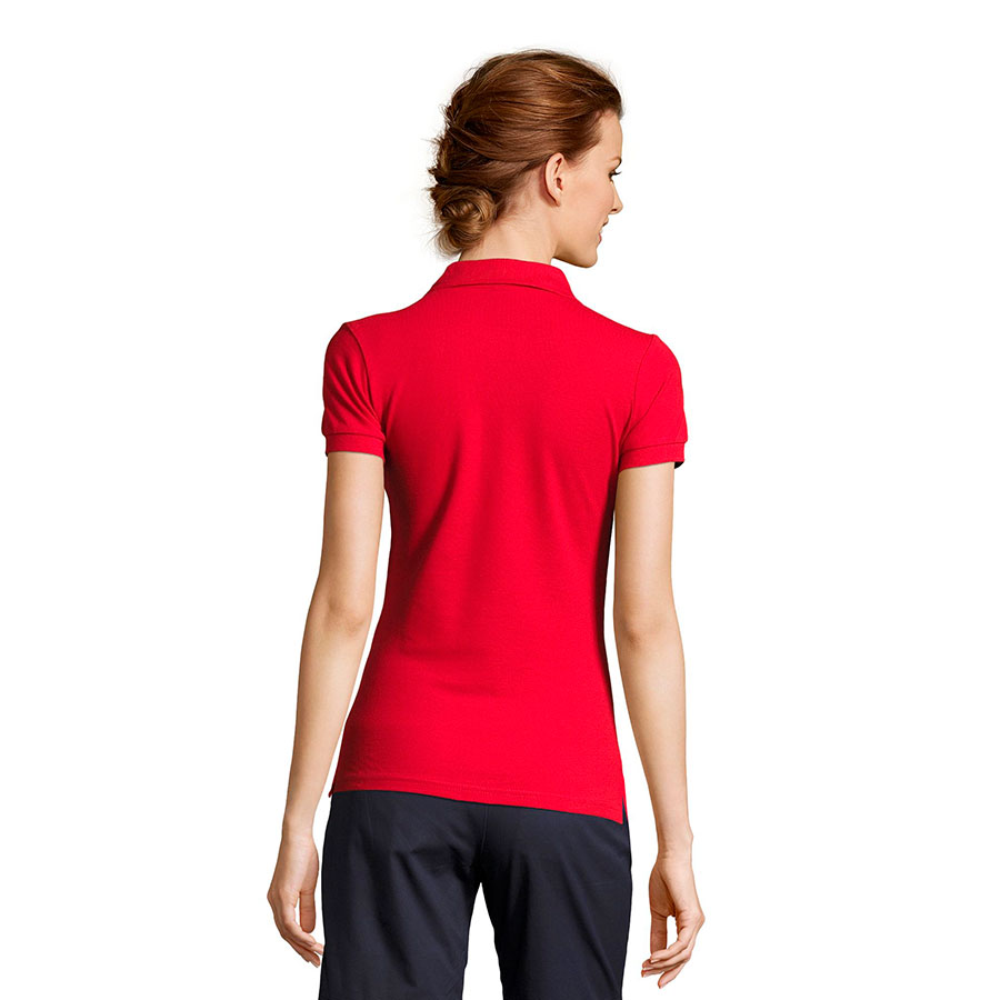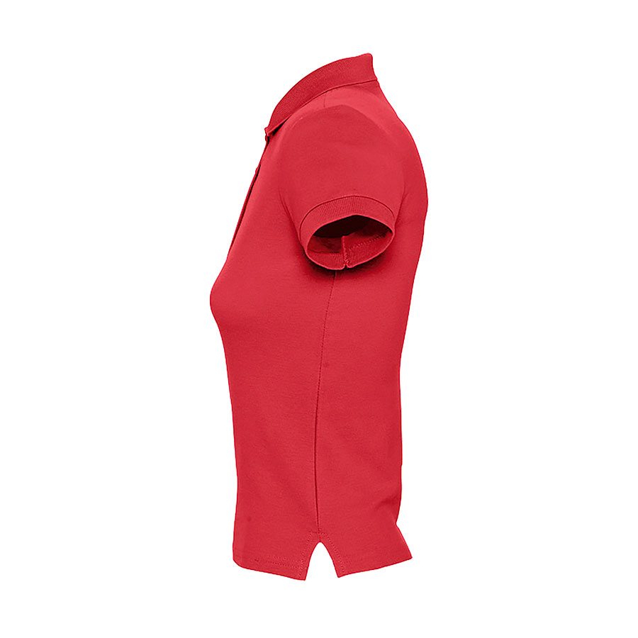 Женская рубашка поло.Прилегающий силуэт.Прямой низ с боковыми разрезами.Воротник и манжеты из рибаны в тон изделия.Ворот укреплен тесьмой.На планке воротника 4 пуговицы в тон изделия.Цвет близкий у PANTONE 200С