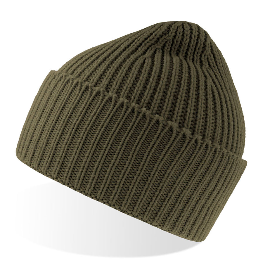 Шапка OAK, оливковый, с отворотом, из пряжи Polylana®: 60% перераб.полиэстер, 40% акрил