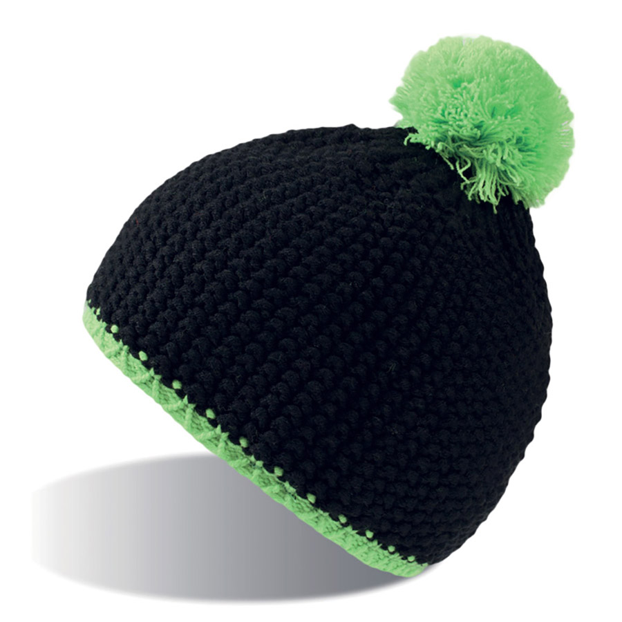 Основной цвет, близкий к Pantone Black 6 C; цвет отделки, близкий к Pantone 376 C Яркая и привлекающая к себе внимание шапка Peak ажурной вязки с контрастной отделкой понизу и помпоном из той же пряжи, которой связана и сама шапка. Мягкая, теплая и удобная, Вы не захотите с ней расставаться в холодное время года. Частичная флисовая подкладка защитит от ветра, а яркие цвета поднимут настроение.