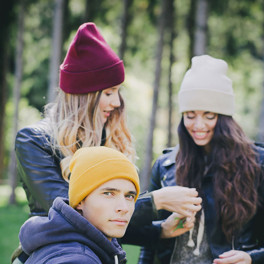Шапка вязаная двойная "Wind", с отворотом_бордовый меланж, 100% акрил