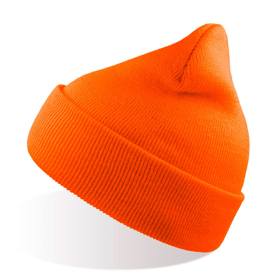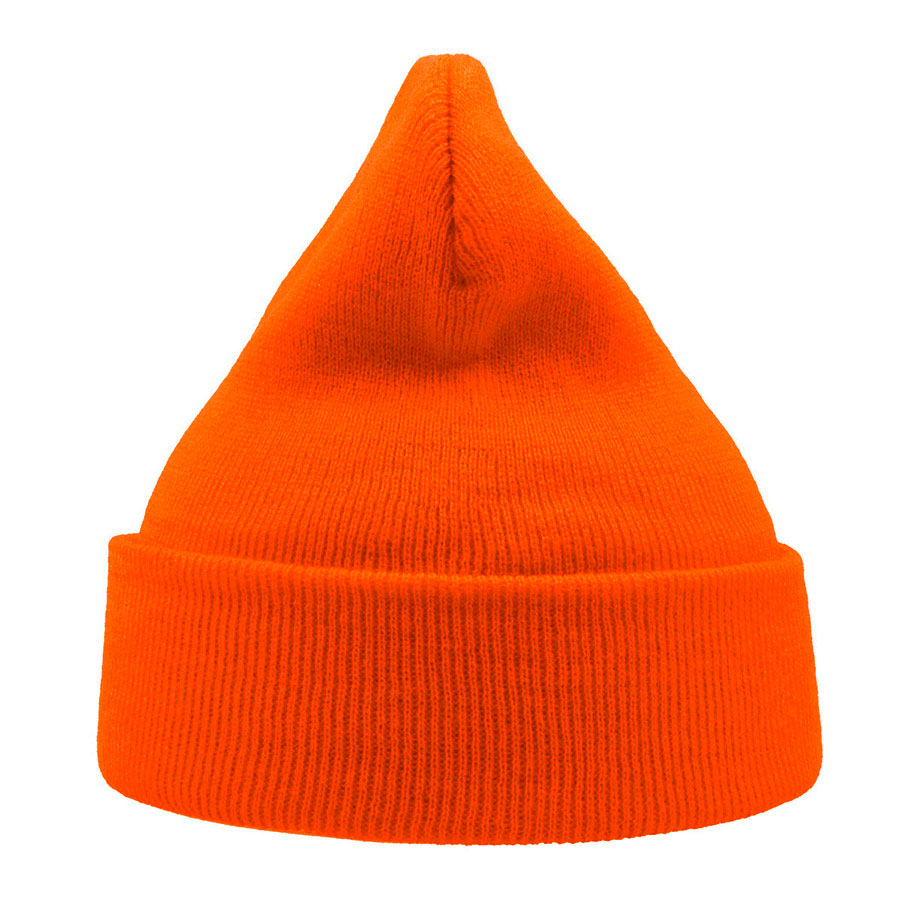 Шапка вязаная двойная "Wind", с отворотом_оранжевый,100% акрил