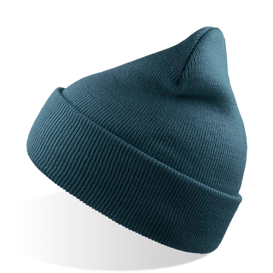 Шапка вязаная двойная "Wind", с отворотом_серо-синий,100% акрил