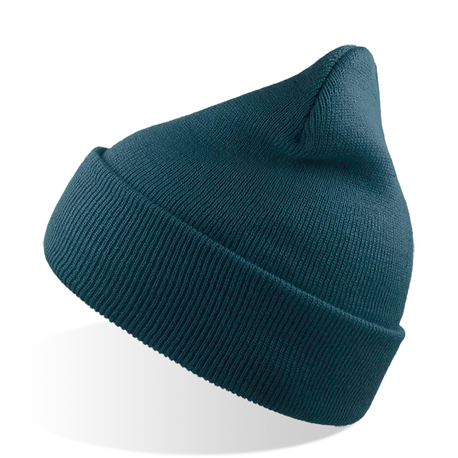 Шапка вязаная двойная "Wind", с отворотом_сине-зеленый,100% акрил