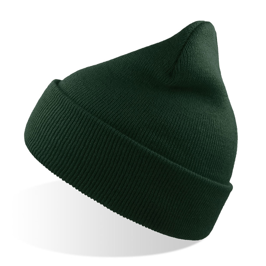 Шапка вязаная двойная "Wind", с отворотом_темно-зеленый,100% акрил