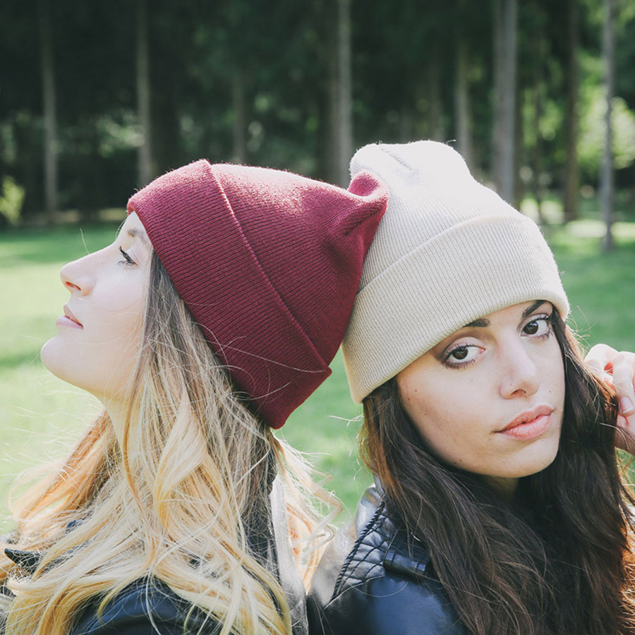 Шапка вязаная двойная "Wind", с отворотом_ягодно-красный,100% акрил