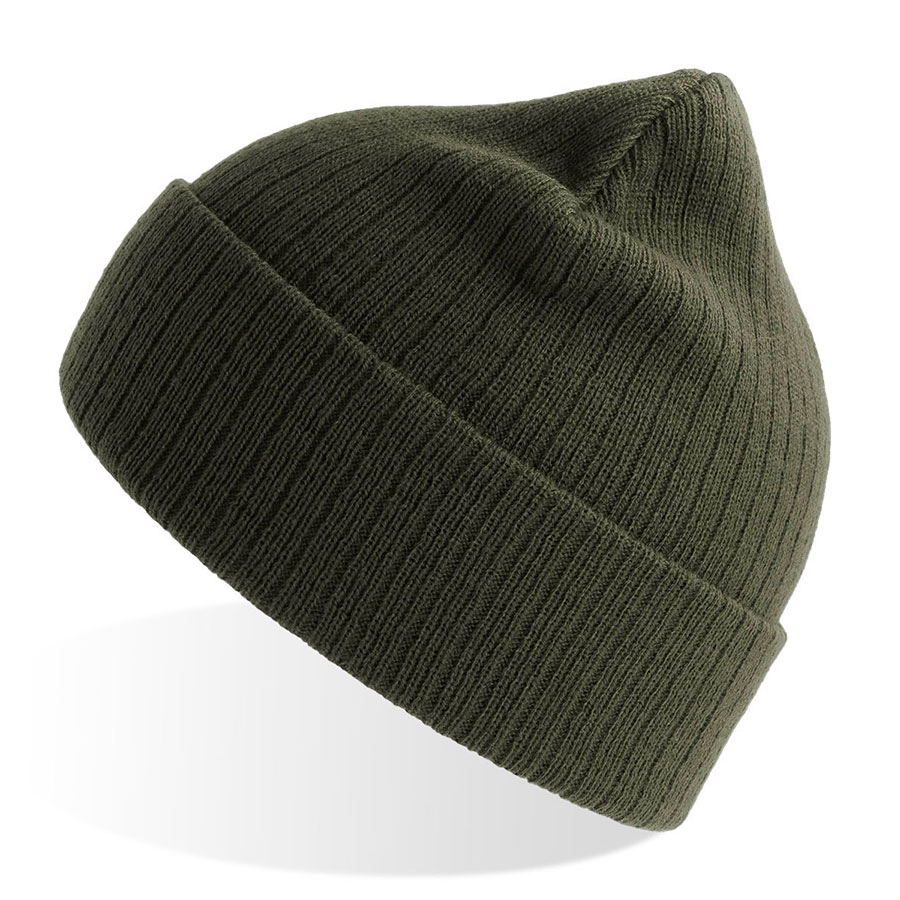 Шапка вязаная "RIO", с отворотом, оливковый, 50% переработанный полиэстер, 50% акрил