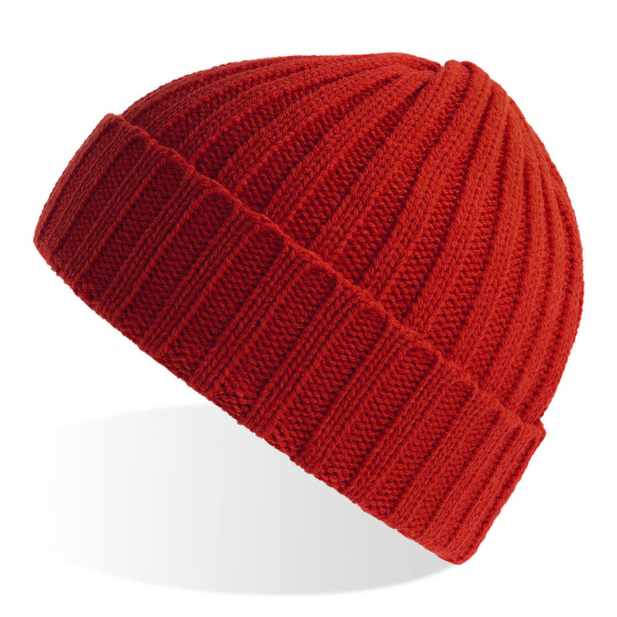 Шапка вязаная "SHORE", с отворотом, кирпичный, 50% переработанный полиэстер, 50% акрил