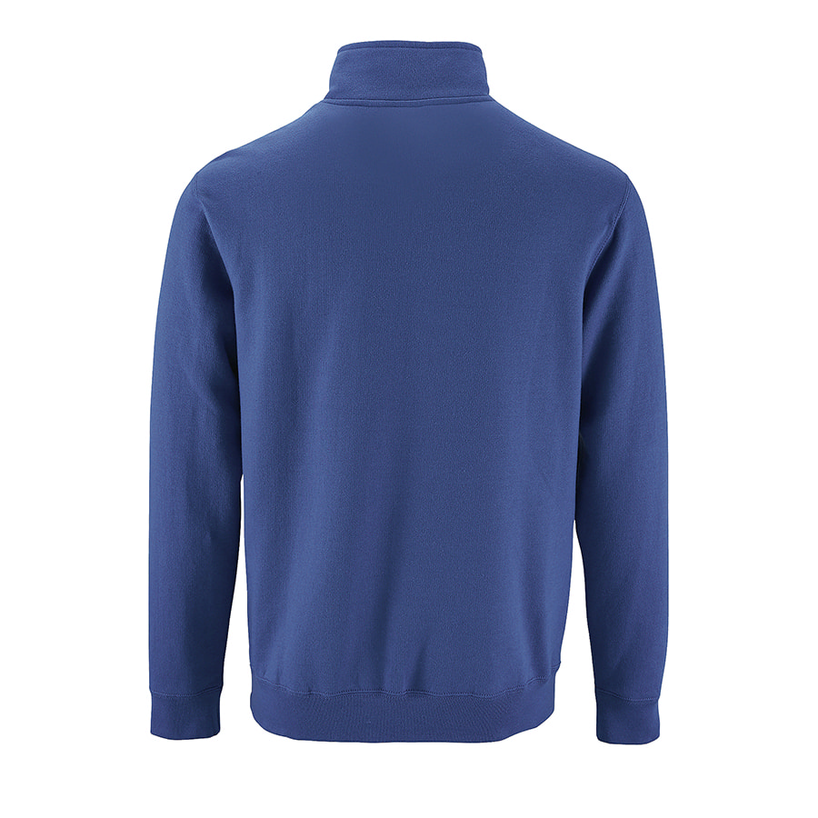 Мужской свитшот с начесом и воротником-стойкой на молнии. Манжеты и низ изделия обработаны резинкой. Внутренняя планка контрастного цвета. Лейбл с размером находится во шве горловины, лейбл производителя вшит в боковом шве изнутри.