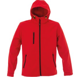 Основная ткань: цвет, близкий к Pantone 200 C, подкладка: цвет, близкий к Pantone 1807 C Ткань softshell. Водонепроницаемая и дышащая двухслойная куртка. Обратная облегченная пластиковая молния со съемным пуллером. Один нагрудный и два боковых кармана н