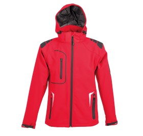Основная ткань: цвет, близкий к Pantone 7636 C, подкладка: цвет, близкий к Pantone 201 C · Трехслойный водонепроницаемый и ветрозащитный softshell: Нижний слой поглощает излишнюю влагу тела Средний слой (непродуваемая ветром мембрана с высокой паропроницаемостью) сохраняет тепло и передает испарения внешнему слою Внешний слой отдает влагу наружному воздуху, одновременно защищая тело от дождя и ветра · Показатели мембраны: Водонепроницаемость 6000 мм Ветрозащитность 4000 г м² 24ч · Покрой рукава-реглан дополнительно защищает от ветра и влаги · Три передних кармана с обратной молнией лазерного кроя с водозащитным покрытием · Съемный капюшон · Регулируемые манжеты на застежке-липучке · Дополнительный карман на плечевой части рукава · Внутренний карман на молнии · Утягивающий шнурок по низу куртки · Светоотражающие элементы на передней и задней части куртки