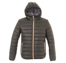 Основная ткань: цвет, близкий к Pantone 5395 U, подкладка: цвет, близкий к Pantone 424 C Мягкая и легкая куртка из нейлона. Контрастная облегченная пластиковая молния со съемным пуллером. Два кармана на молнии. Внутренний карман на липучке. Манжеты рукавов, капюшон и низ куртки обрамлены эластичной резинкой.