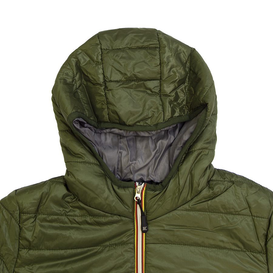 Основная ткань: цвет, близкий к Pantone 5395 U, подкладка: цвет, близкий к Pantone 424 C Мягкая и легкая куртка из нейлона. Контрастная облегченная пластиковая молния со съемным пуллером. Два кармана на молнии. Внутренний карман на липучке. Манжеты рукавов, капюшон и низ куртки обрамлены эластичной резинкой.