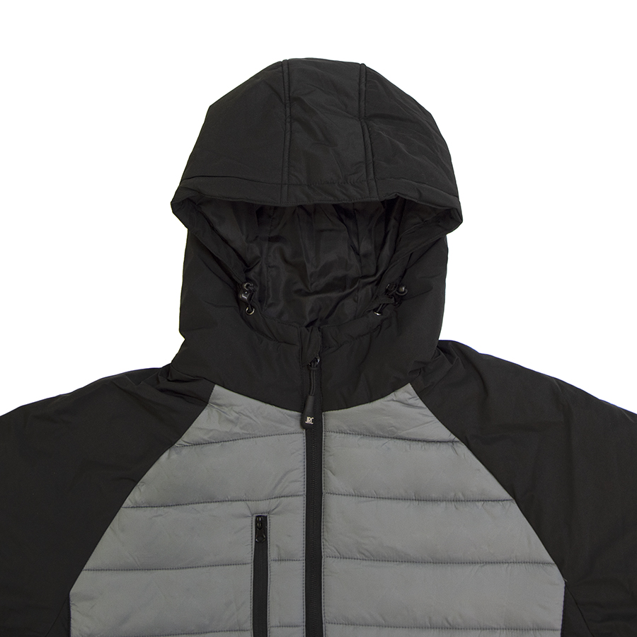 Основная ткань: цвет, близкий к Pantone 703 C, рукава и копюшон: цвет, близкий к Pantone 433 C Легкая куртка с водоотталкивающим покрытием. Обратная пластиковая молния со съемным пуллером. Капюшон на резинке со стопперами. Один нагрудный карман и два боковых кармана на молнии. Внутренний карман на липучке. Утягивающий шнурок по низу куртки. Манжеты рукавов обработаны эластичной резинкой.