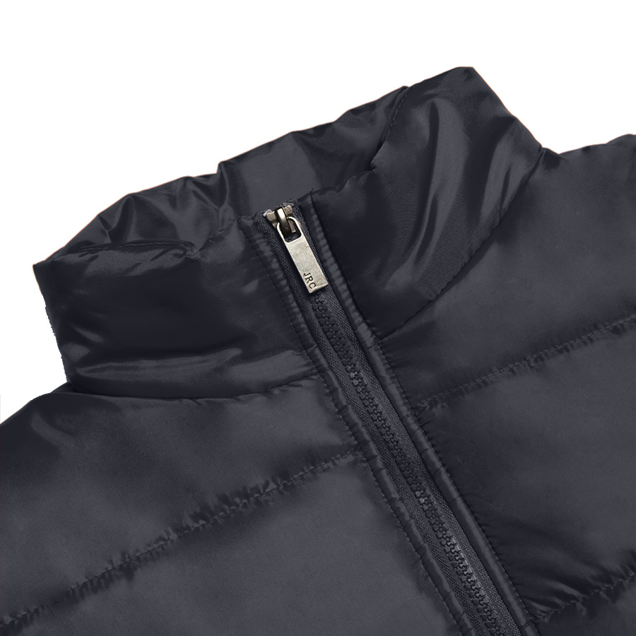 Основная ткань: цвет, близкий к Pantone 533 С, подкладка: цвет, близкий к Pantone Hexachrome Black C Удобный воротник-стойка. Облегченная пластиковая молния с металличесиким брендированным пуллером JRC. Два передних кармана на молнии. Удобный внутренний карман на липучке.